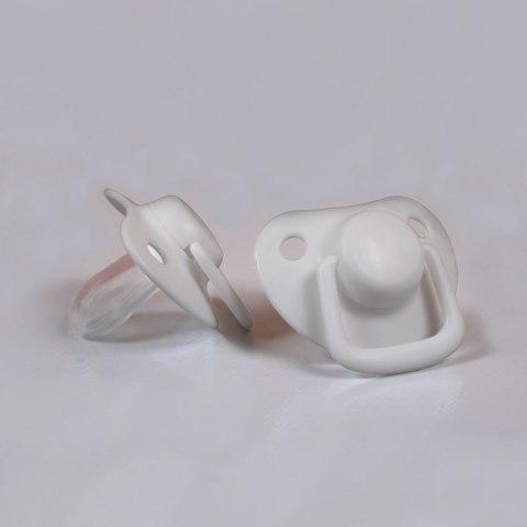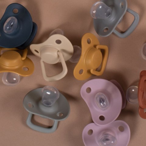 Silikonowe smoczki uspokajające, zestaw 2 sztuk. W komplecie z pudełkiem, idealnym do przechowywania zapasowego smoczka. Występują w 2 rozmiarach : 0m+ i 6m+