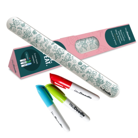 - Flamastry w zestawie: Zestaw zawiera trzy nietoksyczne flamastry (niebieski, zielony, czerwony), które szybko schną i nie rozmazują się na silikonowej powierzchni.