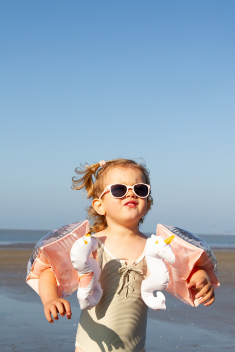 Okulary przeciwsłoneczne dla dzieci od 2 do 4 roku życia. Zapewniają maksymalną ochronę dla oczu dziecka- pochłaniają 100% promieniowania UVA, UVB i UVC. Soczewki wykonane z poliwęglanu. Materiał ten cechuje wyjątkowa trwałość i wysoka odporność na potłuczenie. Mają 3 kategorię przyciemnienia.