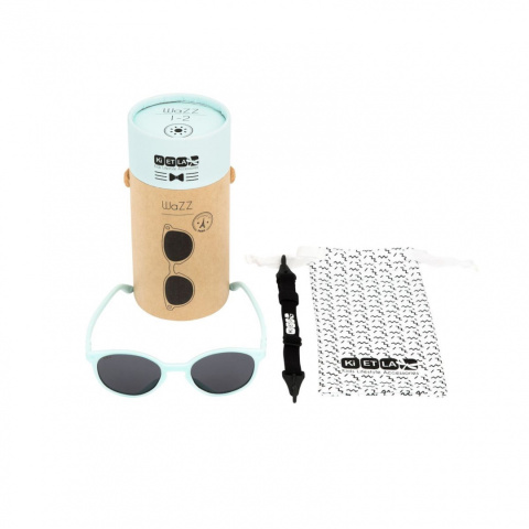 W 100% bezpieczne- okulary nie posiadają zawiasów, przez co dziecku nie grozi porysowanie się lub połknięcie części metalowych. W zestawie jest wygodna i miękka opaska, której szerokość można regulować.