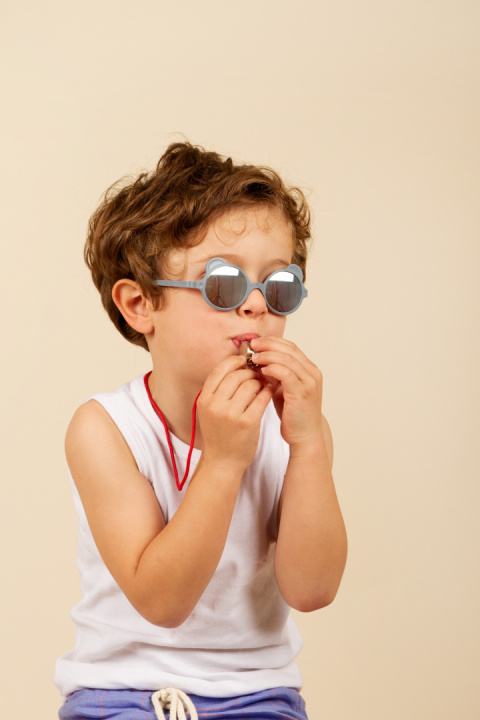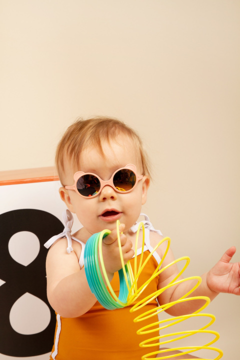 • Okulary przeciwsłoneczne dla dzieci od 2 do 4 roku życia. Zapewniają maksymalną ochronę dla oczu dziecka- pochłaniają 100% promieniowania UVA, UVB i UVC. Soczewki wykonane z poliwęglanu. Materiał ten cechuje wyjątkowa trwałość i wysoka odporność na potłuczenie. Mają 3 kategorię przyciemnienia.