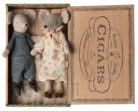 • Maileg Babcia i dziadek w pudełku po cygarach