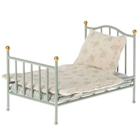 Maileg Metalowe Łóżeczko z pościelą MINT - Akcesoria dla lalek