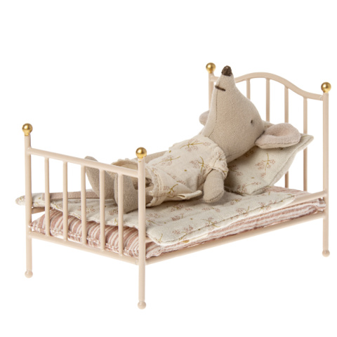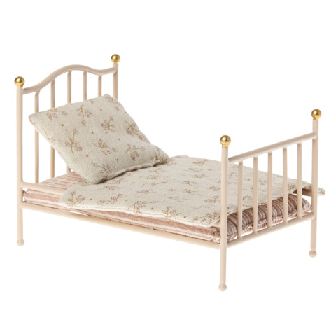 Metalowe łóżeczko z pościelą idealne dla małych myszek i króliczków Maileg
