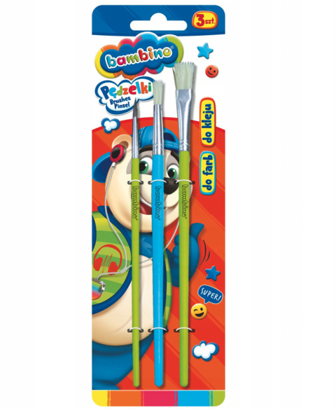 Pędzelki szkolne 3szt do farb i kleju BAMBINO