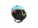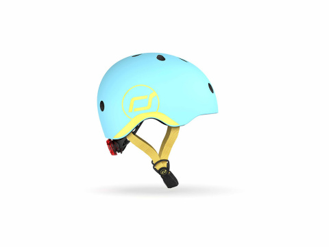 - kask jest spójny kolorystycznie z kolekcją Highwaykick 1 Icecream - po bokach elektryzująco jasnoniebieskiej skorupy (w kolorze Blueberry), znajdują się jasnożółte (w kolorze Lemon) grafiki z logo Scoot&Ride, w tym samym kolorze są również taśmy regulujące