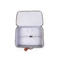 Walizka jest zabezpieczona od spodu oraz na rogach wstawkami z eko skóry.