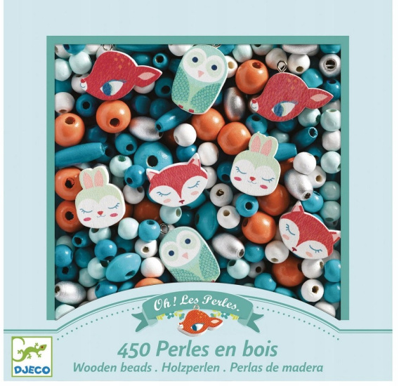 - 450 różnych drewnianych koralików