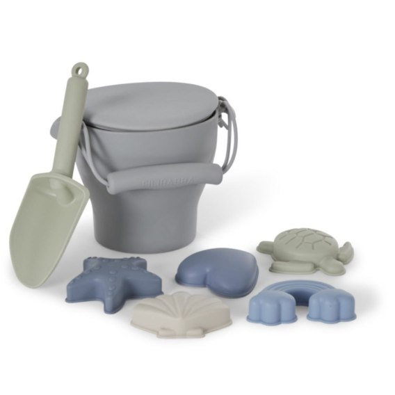 Zestaw zabawek do piasku w wiaderku został wykonany z miękkiego i bardzo trwałego silikonu, w 100% wolnego od BPA.