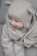 Miękka kominiarka dla dzieci z naturalnej wełny merino duńskiego producenta HUTTELiHUT. Czapka jest wykonana z wełny merino przypominającą polarek, dzięki czemu jest bardzo miękka i delikatna. Kominiarka jest lekka, elastyczna i sprężysta, dzięki czemu jest niezwykle wygodna i bezpieczna dla delikatnej skóry dzieci i alergików. Czapka ogranicza ryzyko przeziębienia, ponieważ szyja i kark dziecka są chronione przed zimnem. Misiowe uszka dodają uroku czapeczce. Dookoła buzi dziecka znajduje się elastyczny ściągacz, który z łatwością dopasowuje się do główki.