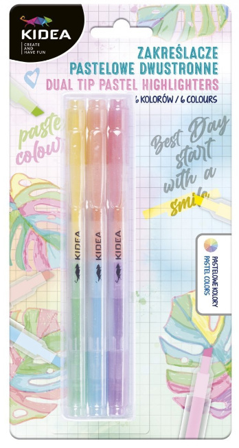 KIDEA Zakreślacze pastelowe dwustronne 6 kolorów