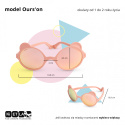 Okulary dla dzieci od 1 do 2 roku życia. Zaprojektowane i wykonane we Francji. Soczewki wykonane z poliwęglanu o bardzo wysokim stopniu przyciemnienia (kategoria 3). Materiał ten cechuje wyjątkowa trwałość i wysoka odporność na potłuczenie. Zapewniają maksymalną ochronę dla oczu dziecka- pochłaniają 100% promieniowania UVA, UVB i UVC.