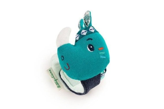 Pluszowa grzechotka na zwijanej bransoletce Nosorożec Marius belgijskiej marki Lilliputiens to niebanalna aktywizująca zabawka dla niemowląt. Miękka, kolorowa, uszyta z bawełny, bransoletka jest zapinana na rzep i można ją założyć na rączkę lub nóżkę maluszka. Szeleści przy pocieraniu. Zdobi ją główka - grzechotka radosnego niebieskiego Nosorożca Mariusa ze stymulującymi sensorycznie uszkami i rogiem. Zabawka rozwija małą motorykę (potrząsanie), aktywizuje zmysł słuchu (szeleści, grzechocze), wzroku i dotyku.