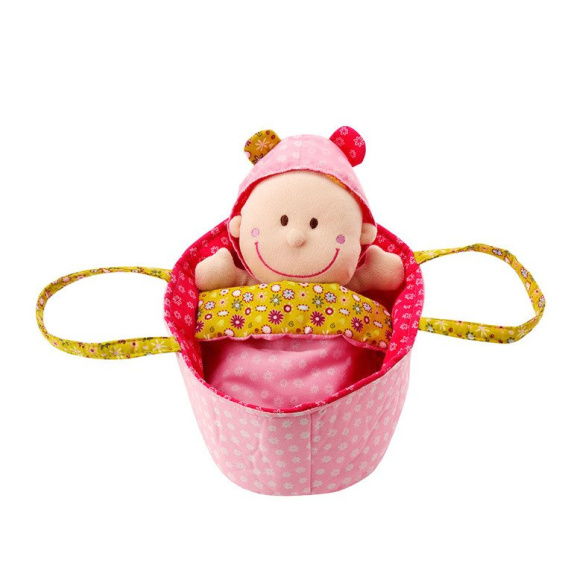 LILLIPUTIENS Lalka dzidziuś w koszyczku z grzechotką, ubrankiem i kocykiem Chloe 9 m+