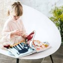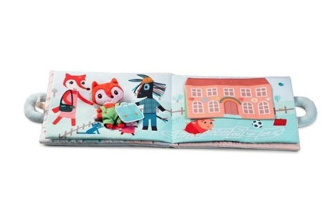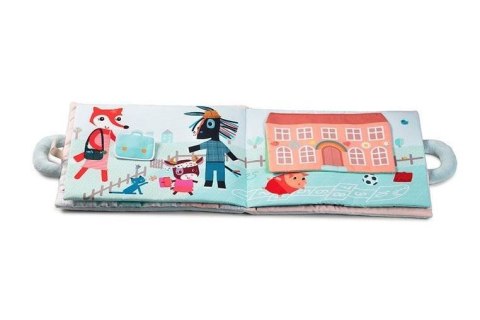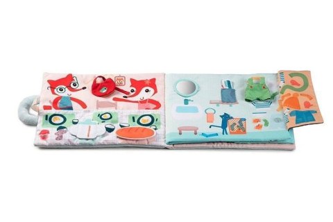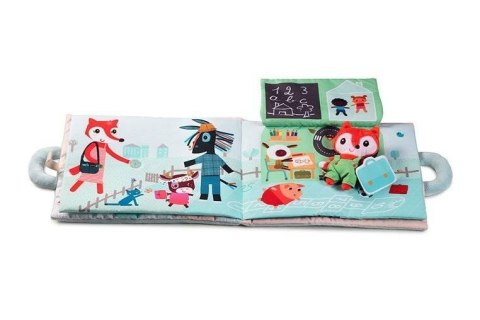 Książeczka aktywizująca „Dzień dobry, mały lisku" belgijskiej marki Lilliputiens to idealna pierwsza lektura dla maluszka. Na jej okładce znajduje się dziecięcy pokoik - biurko pod oknem i łóżeczko, do którego można włożyć dołączonego do książeczki uroczego liska - mini-przytulankę. Jego codzienne doświadczenia można śledzić i inicjować na kolejnych stronach lektury. Wykorzystując odczepiane lub odchylane elementy z różnych tkanin, można snuć opowieść o poranku naszego bohatera - od śniadania z rodzicami, przez toaletę i zmianę piżamki na wyjściowe ubranko, drogę z plecakiem do szkoły, lekcje, obiad w stołówce, aż po leżakowanie. Liska można m.in. przebierać, myć mu ząbki, karmić butelką, sadzać za stołem i w szkolnej ławce, kłaść spać itd. Wewnątrz książeczki znajdują się pomieszczenia z domu liska i szkolne sale oraz teren przed budynkiem. Kolorowe obrazki doskonale nadają się do snucia opowieści i łatwo zapadają w pamięć. Książeczka ma wygodne do przenoszenia rączki, jest perfekcyjnie wykończona, z dbałością o każdy szczegół i w pełni bezpieczna dla dziecka. Pobudza dziecięcą wyobraźnię i ciekawość, aktywizuje zmysły wzroku, dotyku, małą motorykę i sferę uczuciową. Jest także świetnym sposobem na zaszczepienie w maluszku miłości do książek oraz oswojenia go z porannymi rytuałami czy szkolną rutyną.