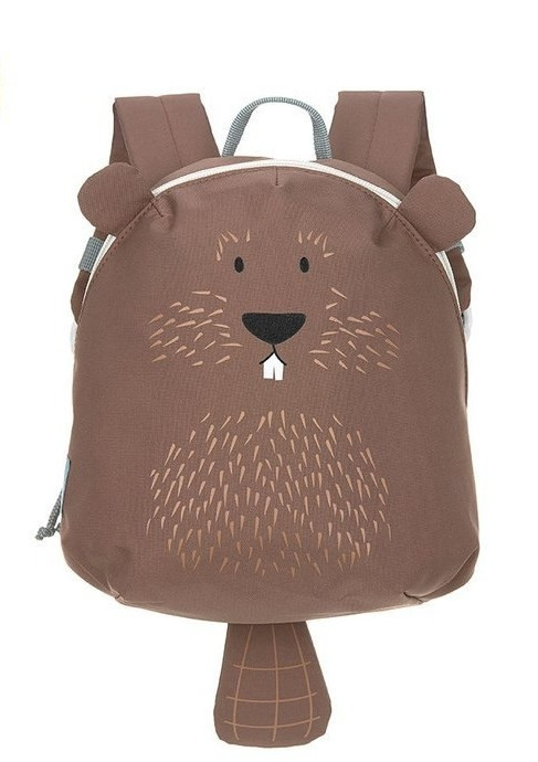 Wyjątkowo uroczy plecaczek 3D w kształcie bobra niemieckiej marki LASSIG. Funkcjonalny, lekki i wygodny, idealny dla maluchów już od 2. roku życia, do przedszkola i na krótkie wycieczki. Bóbr ma piękny brązowy kolor, uszka, malowany pyszczek i futerko oraz długi ogon. Dość przestronna komora główna zapinana jest na suwak, posiada wewnętrzną kieszeń na butelkę z napojem oraz etykietkę z wizytówką, na której można zapisać imię dziecka i numer kontaktowy rodzica. Plecak uszyto z wysokiej jakości, trwałych materiałów, tylna ścianka jest lekko wzmocniona, ale nadal miękka w kontakcie z plecami dziecka. W górnej części znajduje się uszko do zawieszenia plecaka, np. na haczyku w szatni. Dość szerokie, grubsze i miękkie ramiączka zapewniają wygodę noszenia. Z przodu, na klatce piersiowej dodatkowo wyposażone są z w stabilizujące i odciążające plecy zapięcie na zatrzask - jego wysokość, podobnie jak długość ramiączek, można regulować i na bieżąco dopasowywać do wzrostu dziecka. Uszko, paski oraz ułatwiające dziecku samodzielne zapinanie sznureczki przy suwakach mają kolor bladoniebieski. Materiał plecaka łatwo się czyści i jest odporny na wilgoć.