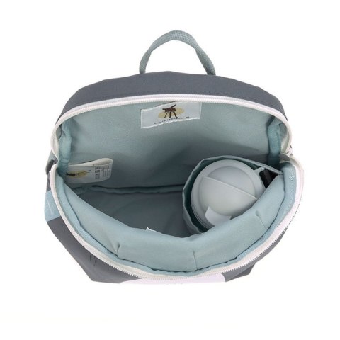 Wyjątkowo uroczy plecaczek 3D w kształcie szopa niemieckiej marki LASSIG. Funkcjonalny, lekki i wygodny, idealny dla maluchów już od 2. roku życia, do przedszkola i na krótkie wycieczki. Szop ma piękny ciemnoszary kolor, spore uszka, malowany pyszczek i futerko oraz długi ogon w biało-czarne pasy. Dość przestronna komora główna zapinana jest na suwak, posiada wewnętrzną kieszeń na butelkę z napojem oraz etykietkę z wizytówką, na której można zapisać imię dziecka i numer kontaktowy rodzica. Plecak uszyto z wysokiej jakości, trwałych materiałów, tylna ścianka jest lekko wzmocniona, ale nadal miękka w kontakcie z plecami dziecka. W górnej części znajduje się uszko do zawieszenia plecaka, np. na haczyku w szatni. Dość szerokie, grubsze i miękkie ramiączka zapewniają wygodę noszenia. Z przodu, na klatce piersiowej dodatkowo wyposażone są z w stabilizujące i odciążające plecy zapięcie na zatrzask – jego wysokość, podobnie jak długość ramiączek, można regulować i na bieżąco dopasowywać do wzrostu dziecka. Uszko, paski oraz ułatwiające dziecku samodzielne zapinanie sznureczki przy suwakach mają kolor bladoniebieski. Materiał plecaka łatwo się czyści i jest odporny na wilgoć.