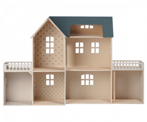 Domek dla lalek Maileg z pięknie zdobionymi ścianami. Produkty pasujące do domu: Króliki w rozmiarach 1, 2, micro, rodzina Teddy oraz meble i dodatki z serii Miniature.