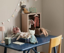 Duża szafa z szufladą i trzema wieszakami pomieści naprawdę sporo rzeczy. Posiada drążek na ubrania oraz 4 półki. Do jednej z nich można włożyć szufladkę na skarby. Szafa Maileg posiada piękną kwiecistą tapetę w środku.