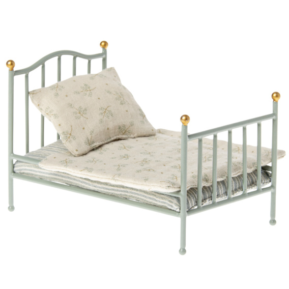 Maileg Metalowe Łóżeczko z pościelą MINT - Akcesoria dla lalek