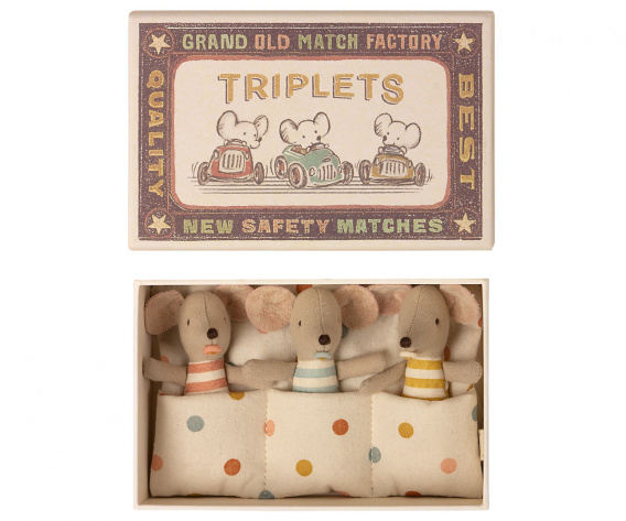 Maileg Myszki Trojaczki w pudełku zapałek - triples in match
