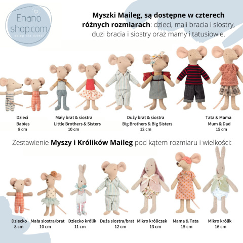 Przedstawiamy uroczy zestaw trzech małych myszek, które zamieszkują piękne pudełko po zapałkach. Każda z tych malutkich myszek została starannie wykonana i posiada unikalny kolor ubranka, co dodaje im jeszcze większego uroku. Dodatkowo, każdy trojaczek ma swoje własne miejsce w pudełku po zapałkach, gdzie czeka na przytulanie w miękkim śpiworku. Te urocze myszki są idealnym prezentem dla dzieci oraz kolekcjonerów zabawek. Dzięki swojej wysokiej jakości wykonania i dbałości o detale, zapewniają wiele godzin radości i zabawy. Niech te słodkie myszki stworzą magiczną atmosferę we wnętrzu Twojego domu!