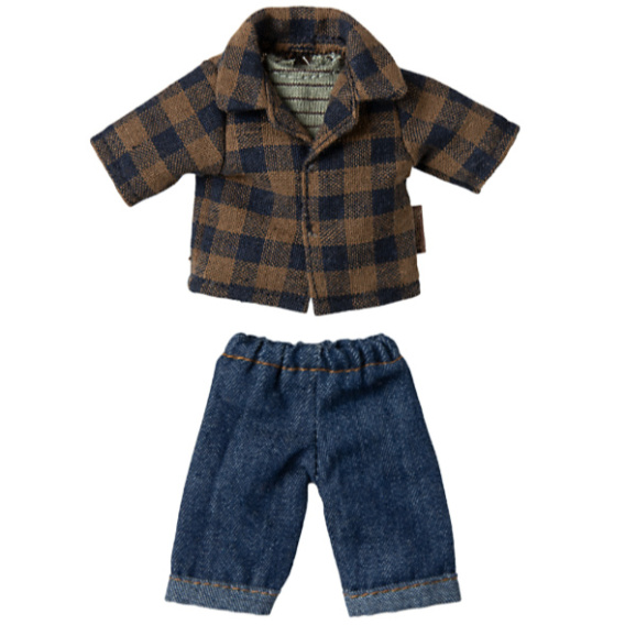 Maileg Ubranko - Brązowa koszula w kratę i spodnie | tata mysz