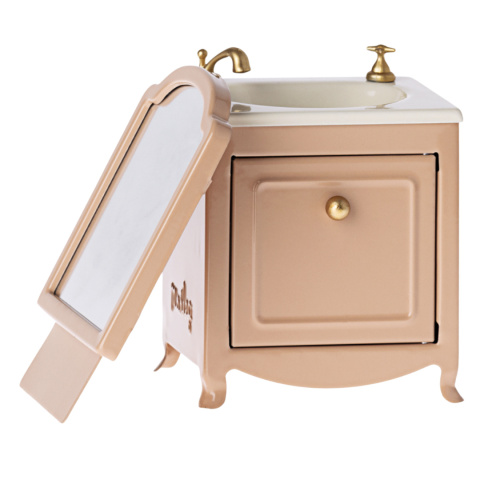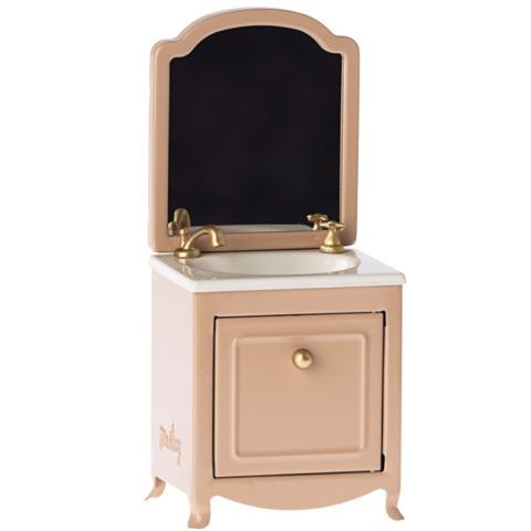 Dodaj uroku łazience w domku dla lalek dzięki tej przepięknej umywalce Maileg w kolorze pudrowego różu. 💗 Wykonana z metalu szafka z umywalką zachwyca detalami: otwierane drzwiczki i zdejmowane lustro czynią ją nie tylko estetyczną, ale też funkcjonalną.