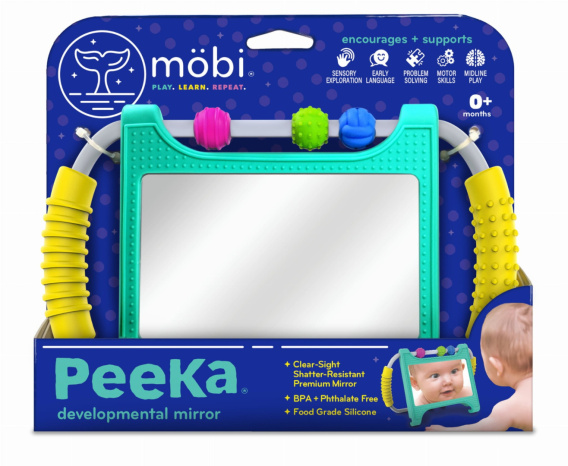 Lusterko posiada silikonowy stojak wielopozycyjny z koralikami do zabawy. Zabawkę można postawić przed dzieckiem lub może ją ono trzymać za wygodne uchwyty. Peeka ma przejrzyste, wyraziste i bezpieczne lusterko. Dla dzieci od urodzenia.