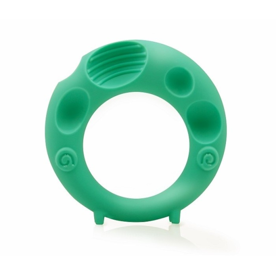 Gryzak silikonowy o geometrycznym kształcie przypominający owcę, został zaprojektowany z myślą o najmłodszych. Gryzak odznacza się wyraźnym zielonym kolorem, który przyciagnie wzrok dziecka, zachęca do gryzienia i zabawy. To podstawowy kolor który dziecko potrafi rozróżnić (z wyjątkiem czarno-białych). Ponadto gryzak jest przyjemny w dotyku, średnio męciutki, wśród gryzaków geometrycznych. Wgłębienia na Owieczce stymulują u dziecka zmysł dotyku, a do tego masują delikatne dziąsełka i łagodzą ból podczas ząbkowania. Wyprofilowany kształt gryzaka i odpowiedni rozmiar umożliwia dziecku jego chwytanie. Dodatkowo maluch już we wczesnym wieku może nauczyć się podstawoego kształtu geometrycznego takiego jak koło. Gryzak jest bezpieczny i łatwy w gryzieniu nawet po ochłodzeniu. Można używać go w zmywarce, mikrofalówce, a także przechowywać w zamrażarce.