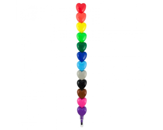 Kolorowa kredka, a każdy kolor w kształcie serduszka. To słodkie upiększenie szkolnego piórnika. 12 kolorowych serduszek w jednej kredce, które można układać w dowolnej kolejności. Każde serduszko może być pojedynczą kredką lub można je połączyć z innymi serduszkami tworząc swoją wyjątkową kredkę. Można także mieszać i przekładać serduszka ze swoimi przyjaciółmi, aby tworzyć śliczne mniejsze lub większe serduszkowe kreacje.