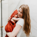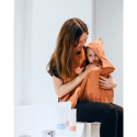 Miękki i delikatny ręcznik - fartuch wykonany z materiałów posiadających certyfikat Oeko-Tex standard 100. Fartuch posiada zapięcie, dzięki czemu rodzić może zawiesić ręcznik na szyi, a ręce pozostały wolne i mogły zająć się dzieckiem podczas kąpieli.