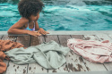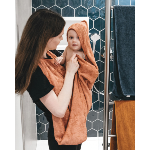 Miękki i delikatny ręcznik - fartuch wykonany z materiałów posiadających certyfikat Oeko-Tex standard 100. Fartuch posiada zapięcie pozwalające zawiesić ręcznik na szyi - ręce rodzica pozostają wolne i może on swobodnie wytrzeć dziecko ręcznikiem po kąpieli. Ręcznik bambusowy jest o 60% bardziej chłonny niż bawełniany i szybko schnie. Prać w temperaturze 40 stopni (delikatny cykl), aby zapobiec skurczeniu się materiału. Suszyć w suszarce bębnowej tylko w niskiej temperaturze. Środki zmiękczające zatykają pory tkaniny bambusowej, co zmniejsza ich wchłanianie. Prasować w niskiej temperaturze.