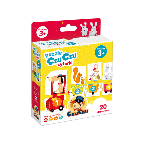 Puzzle CzuCzu Cyferki to doskonała zabawa edukacyjna dla dzieci w wieku 3 lat i starszych. Długa, 20-elementowa układanka o długości 68 cm przedstawia pociąg, który zabiera różnych pasażerów i towary w niezapomnianą podróż.