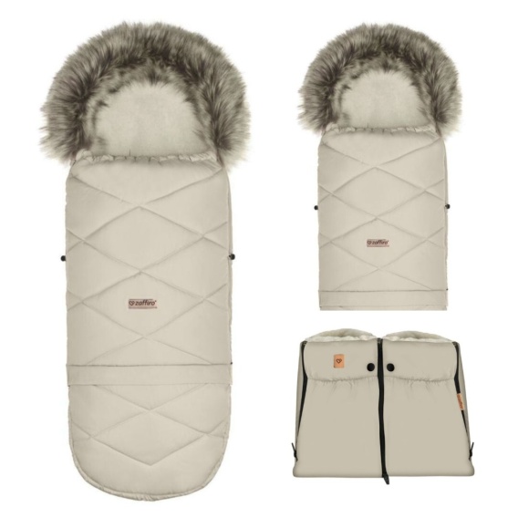 ZAFFIRO Komplet Zimowy GrowUP Aspen + mufki 2w1 – Vanilla | Owcza wełna premium