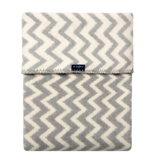 Zaffiro Kocyk bawełniany dziecięcy do wózka - zygzak biało-szary