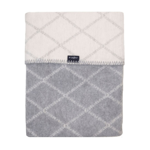 Zaffiro Kocyk bawełniany dziecięzy do wózka - kratka biało-szara