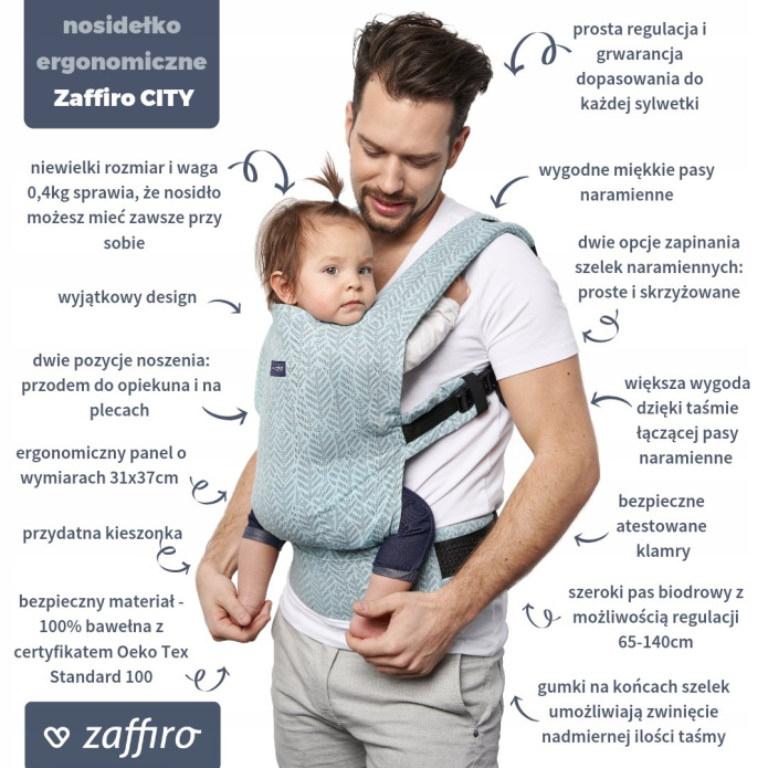 Nosidełko ergonomiczne City w odcieniu mint to idealne rozwiązanie dla rodziców, którzy cenią sobie wygodę, bezpieczeństwo i bliskość z dzieckiem. Zaprojektowane z myślą o zdrowym rozwoju malucha, umożliwia komfortowe noszenie w ergonomicznej pozycji, a jednocześnie wspiera codzienną mobilność opiekuna.