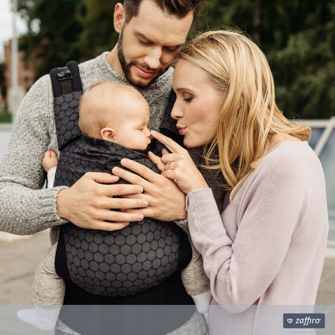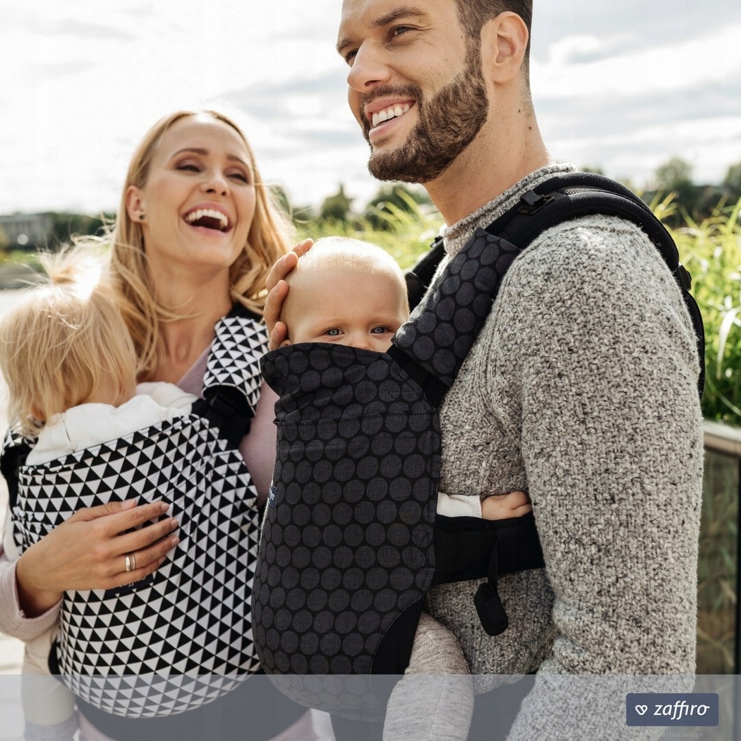 Posiada wygodne i bezpieczne klamry oraz prosty system regulacji, dzięki któremu świetnie da się dopasować do sylwetki zarówno smukłej jak i postawnej osoby. Z tego powodu w roli noszącego mogą sprawdzać się znakomicie nie tylko mamy, ale i tatusiowie.