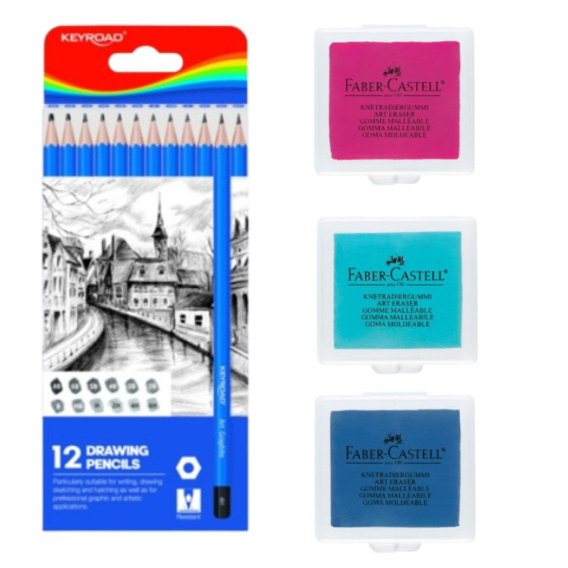 • Zestaw ołówki do szkicowania + 3 gumki chlebowe