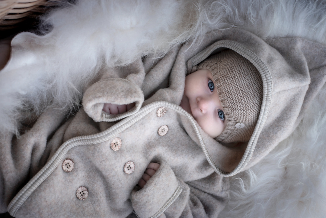 Wełna użyta do produkcji kurteczek i kombinezonów posiada właściwości termoregulacyjne. Wełna reguluje temperaturę, co sprawia że dziecko się nie przegrzeje lub nie wyziębi. Ponadto zapewnia cyrkulację powietrza, ponieważ naturalne tkaniny pozwalają skórze oddychać. Co więcej wełna pochłania wilgość i ma właściwośći samoczyszczące.