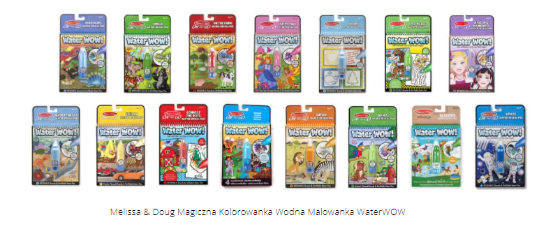 - Melissa & Doug Magiczna Kolorowanka Wodna Malowanka WaterWOW (do wyboru kilka wariantów: dinozaury, dżungla, farma, księżniczki, kształty, labirynty, makijaż i manicure, podwodny świat, pojazdy, połącz kropki, przygoda, safari, zwierzaki, pory roku, w kosmosie)