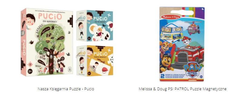 - Nasza Księgarnia Puzzle - Pucio (do wyboru kilka wariantów: co słychać, co tu pasuje, czego brakuje)