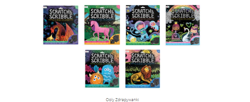 - Ooly Zdrapywanki (do wyboru kilka wariantów: fantastyczne smoki, magiczne jednorożce, odkrywcy kosmosu, ogród księżniczki, potworki, safari)