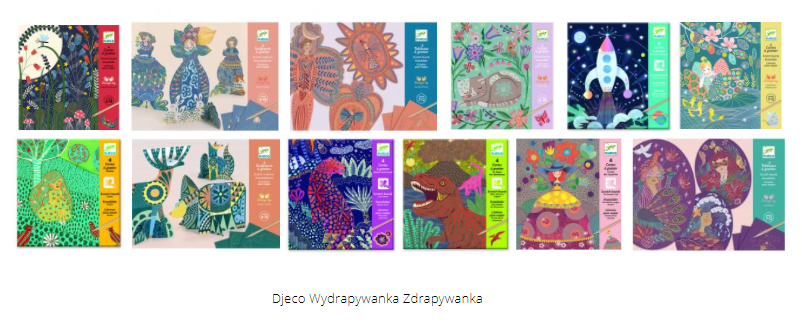 - Djeco Wydrapywanka Zdrapywanka (do wyboru kilka wariantów: pełnia księżyca, piękne sukienki, anioły, spotkania zwierzątek, kosmos, zaczarowany staw, ondine, zwierzęta-folk, natura, dinozaury, bal piękności, nimfy)