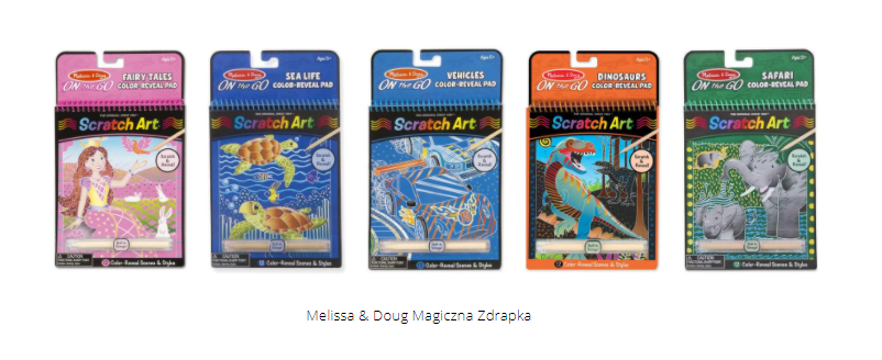 - Melissa & Doug Magiczna Zdrapka (do wyboru kilka wariantów: księżniczki, wróżki i syreny; morskie życie; pojazdy; safari; dinozaury)