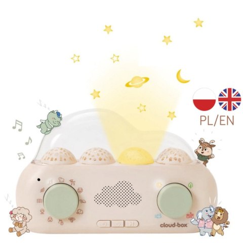 CloudBox™ opowiada 36 bajek z udziałem uroczych postaci, takich jak smok, słoń czy lisiczka, w czterech pięknych sceneriach – od oceanu po gwieździste niebo. Wszystko to wzbogacone o świetlne projekcje i relaksujące dźwięki natury lub klasyczne melodie.