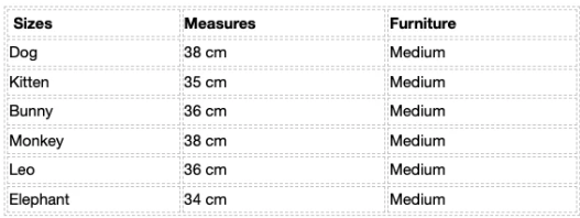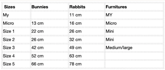 - Króliki i zajączki: rozmiary My, Micro, Rozmiar 1 i Rozmiar 2.