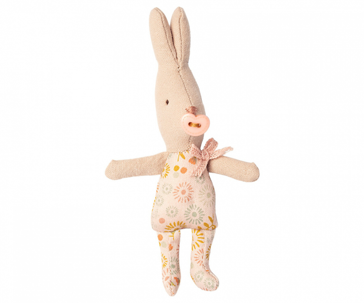 Króliczek Maileg chłopczyk w kremowych śpioszkach lub Króliczek Maileg dziewczynka w różowych śpioszkach z uroczym guziczkiem - smoczkiem