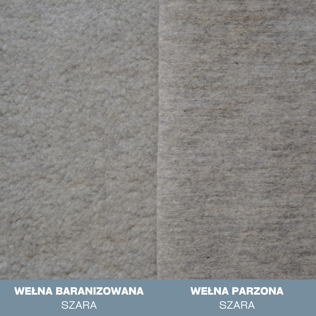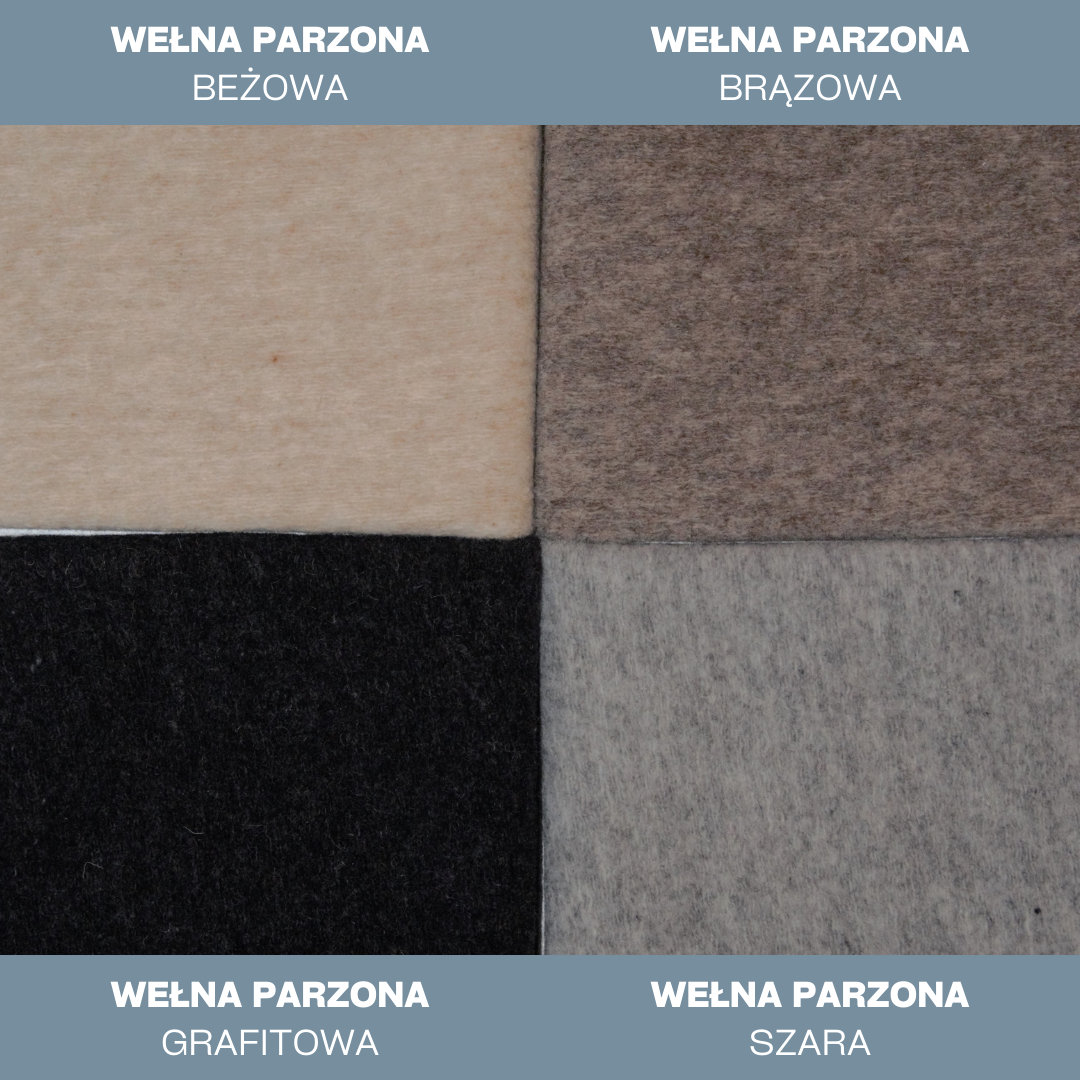 Wełna parzona występuje w czterech kolorach: beżowym, szarym, brązowym i grafitowym.